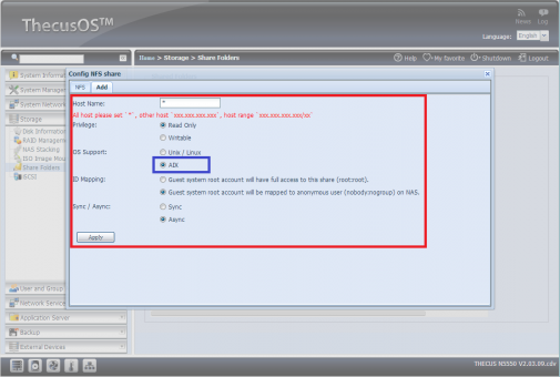 Step 14: Type exportfs -ra to initialize your newly exported directories, or reboot the NAS.